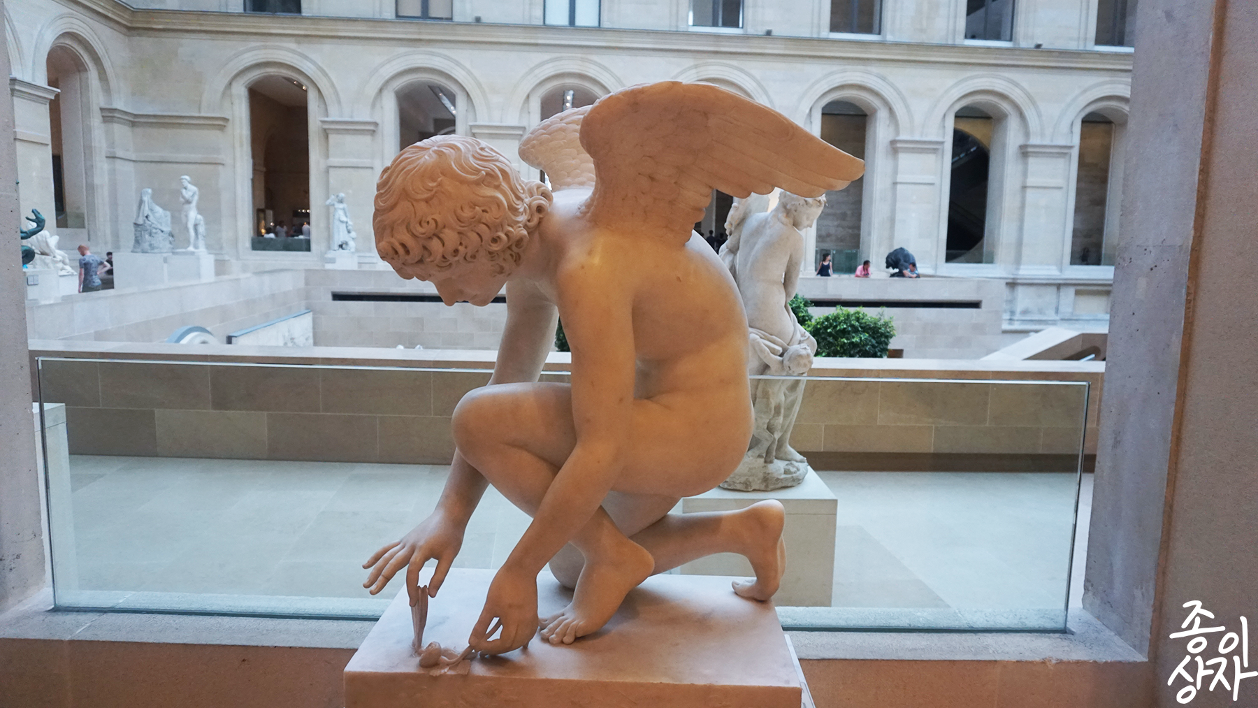 여기 저기 놓여 있는 동상들을 구경하면서 한참을 돌아다니다가 벌써 코 앞까지 다가온 폐장시간. 마지막으로 모나리자나 한 번 보고 갈까 했는데, 거리도 멀고 이제 더 돌아다닐 힘도 없고 배도 고프니 이만 밖으로 나가기로 했다. 고대 이집트 문화를 엄청나게 좋아해서 이집트관을 더 보고 싶기는 했는데, 펭귄이 미라 무섭다고 해서 두고 나 혼자 둘러보자니 기차역에서 한 번 흩어지고 나니 무서워서 멀리가지도 못하겠고, 이집트 관은 보존을 위해서인지 굉장히 난방을 빵빵하게 하고 있었는데, 찜통 더위의 파리에 진절머리나 있었고, 갈증이 몰려와서 포기하기로 했다. 말로만 듣던 이집트 유물들을 코 앞에 두고 더 보지 못한다는 것은 너무나 아쉬웠지만 거기에 조금만 더 있다가는 내가 미라가 될 것만 같았다. 다음에 또 오면 꼭 물을 한가득 들고 와야 겠다.